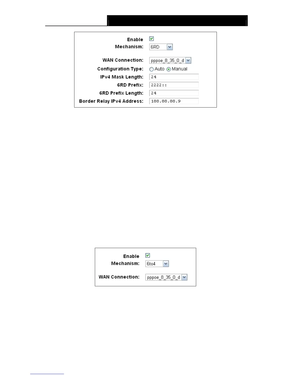 ¾ Border Relay IPv4 Address: The IPv4 address of the border relay router of 6RD tunnel.
