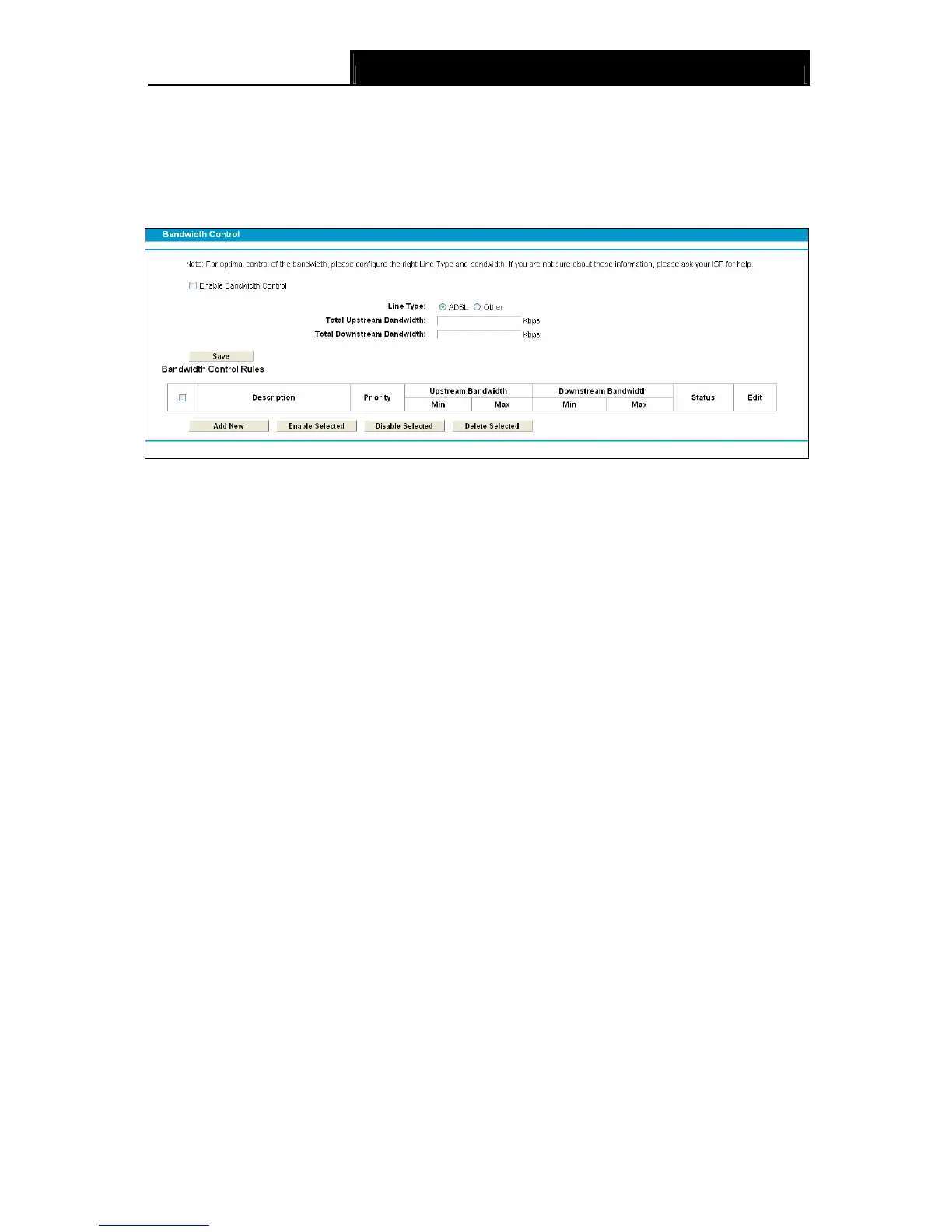 ¾ Enable Bandwidth Control: Check this box so that the Bandwidth Control settings can take