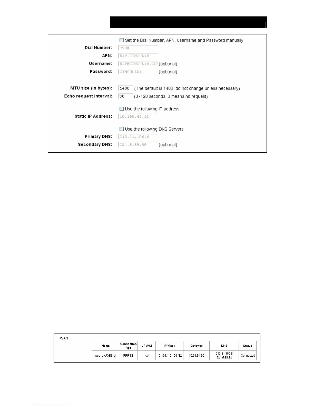 ¾ Set the Dial Number and APN manually: Check the box and fill the Dial Number and APN