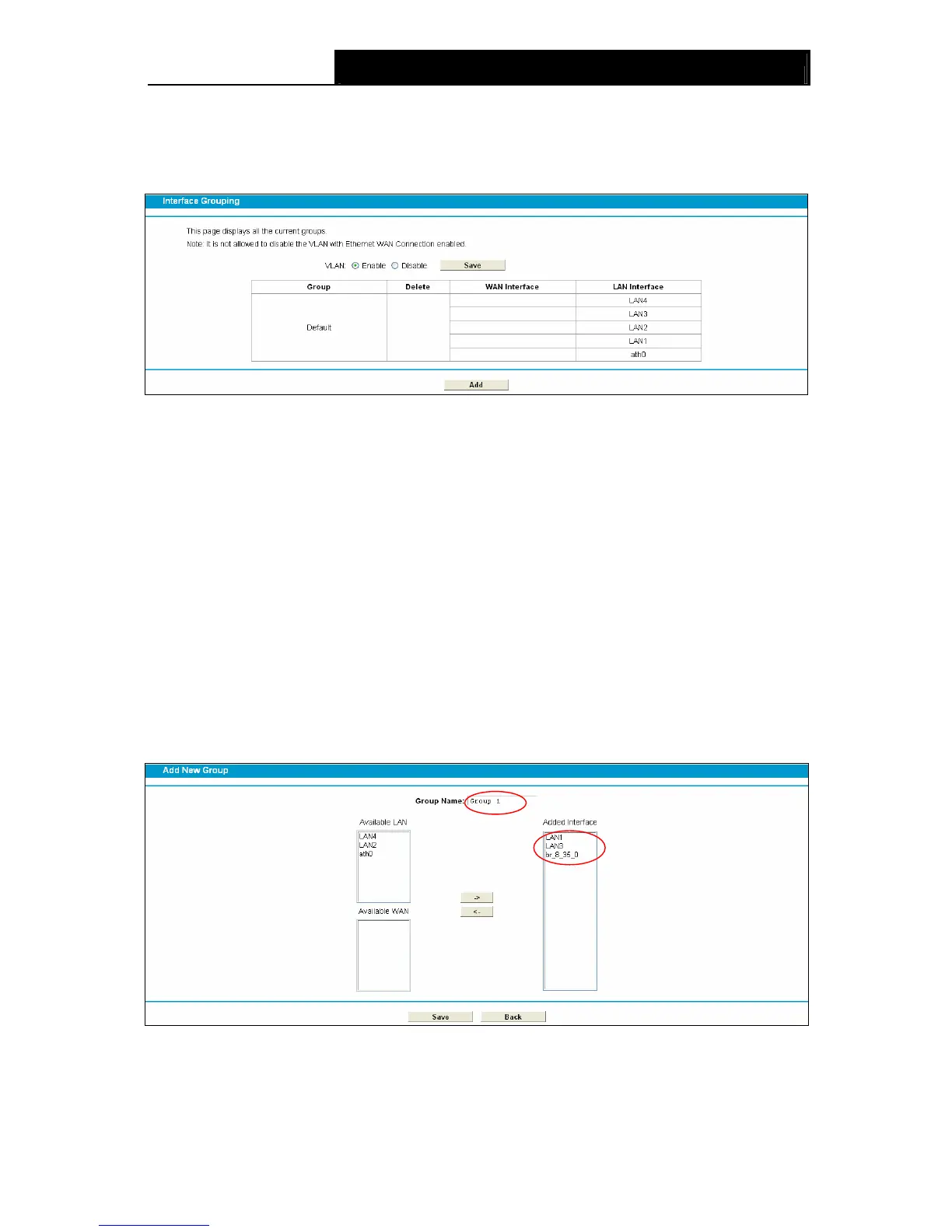 Click the Add button. You can add a new interface group in the next screen. For example, you