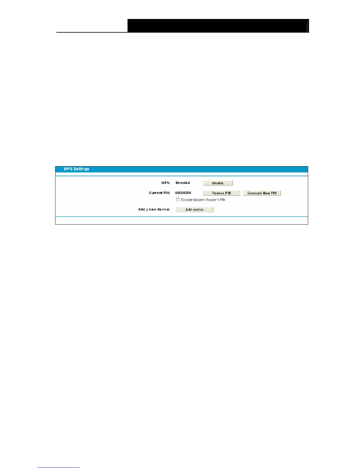 ¾ Current PIN: The current value of the modem router's PIN is displayed here. The default PIN