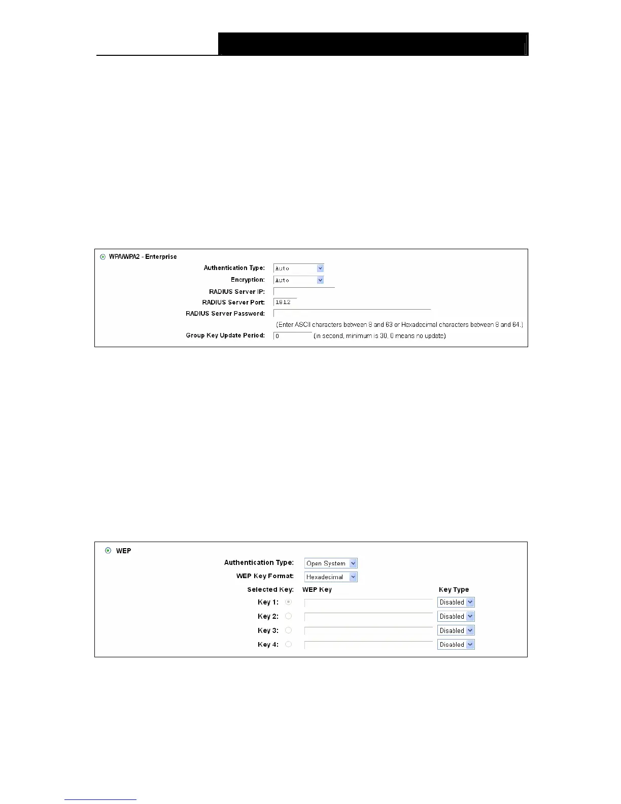 • WEP Key Format: Hexadecimal and ASCII formats are provided here. Hexadecimal