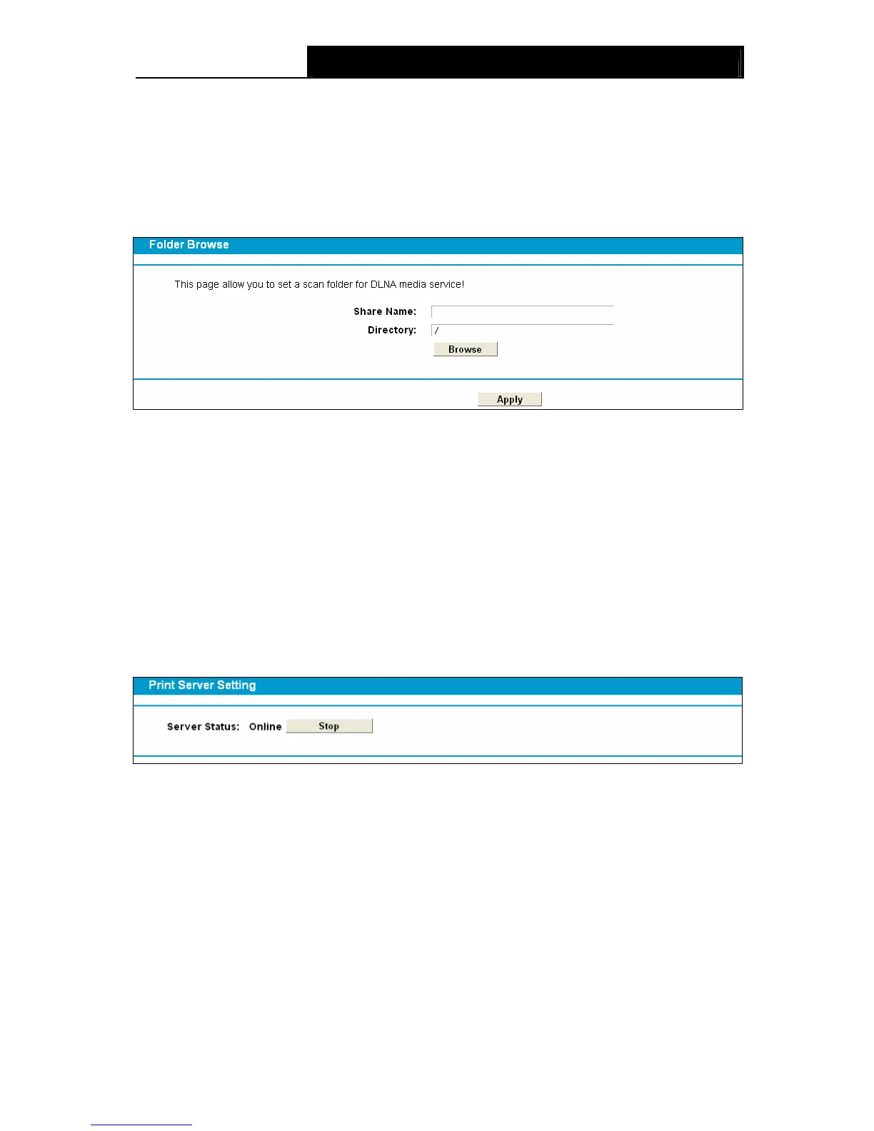 Choose menu “USB Settings”→”Print Server”, you can configure print server on this page as