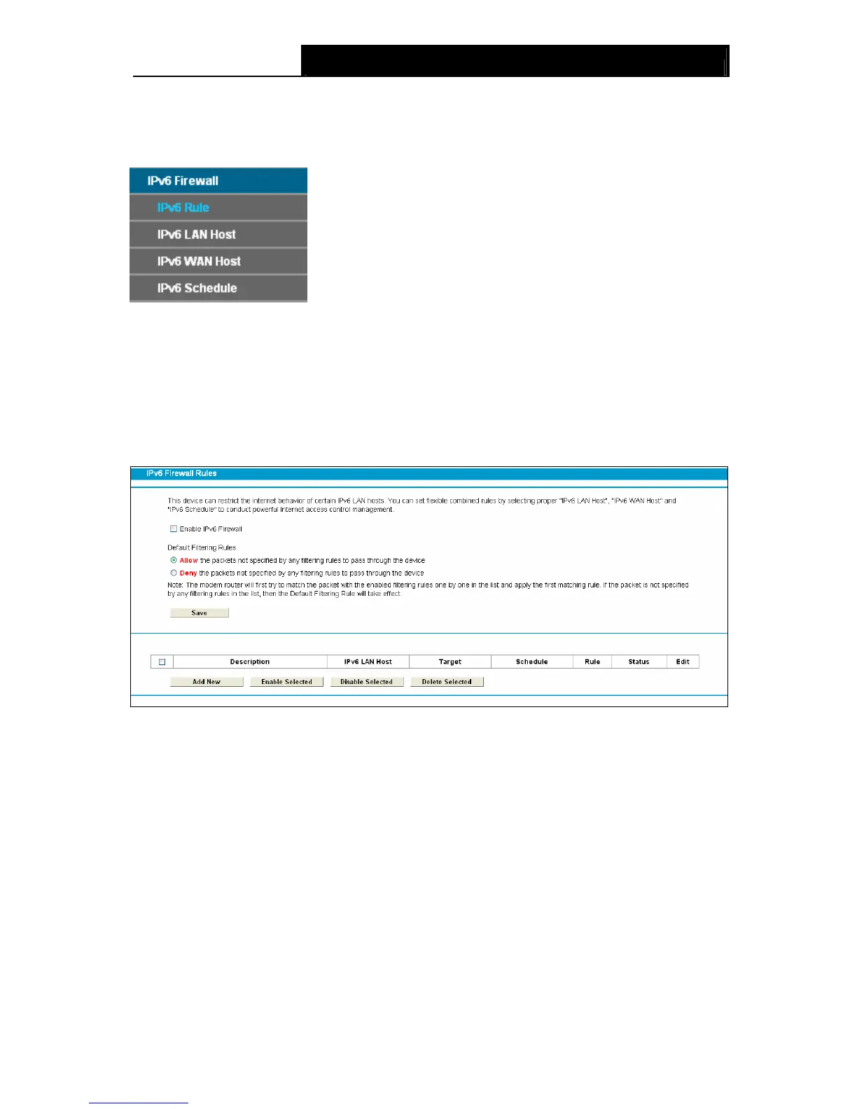 ¾ IPv6 LAN Host: Here displays the LAN host selected in the corresponding rule.