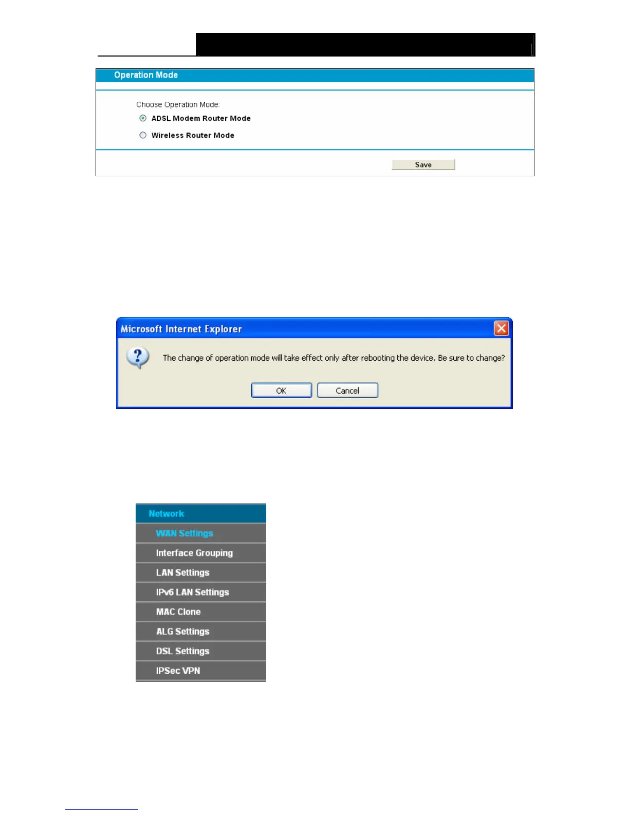 After you click the Save button, the Note Dialog will appear. Click OK and then the modem router