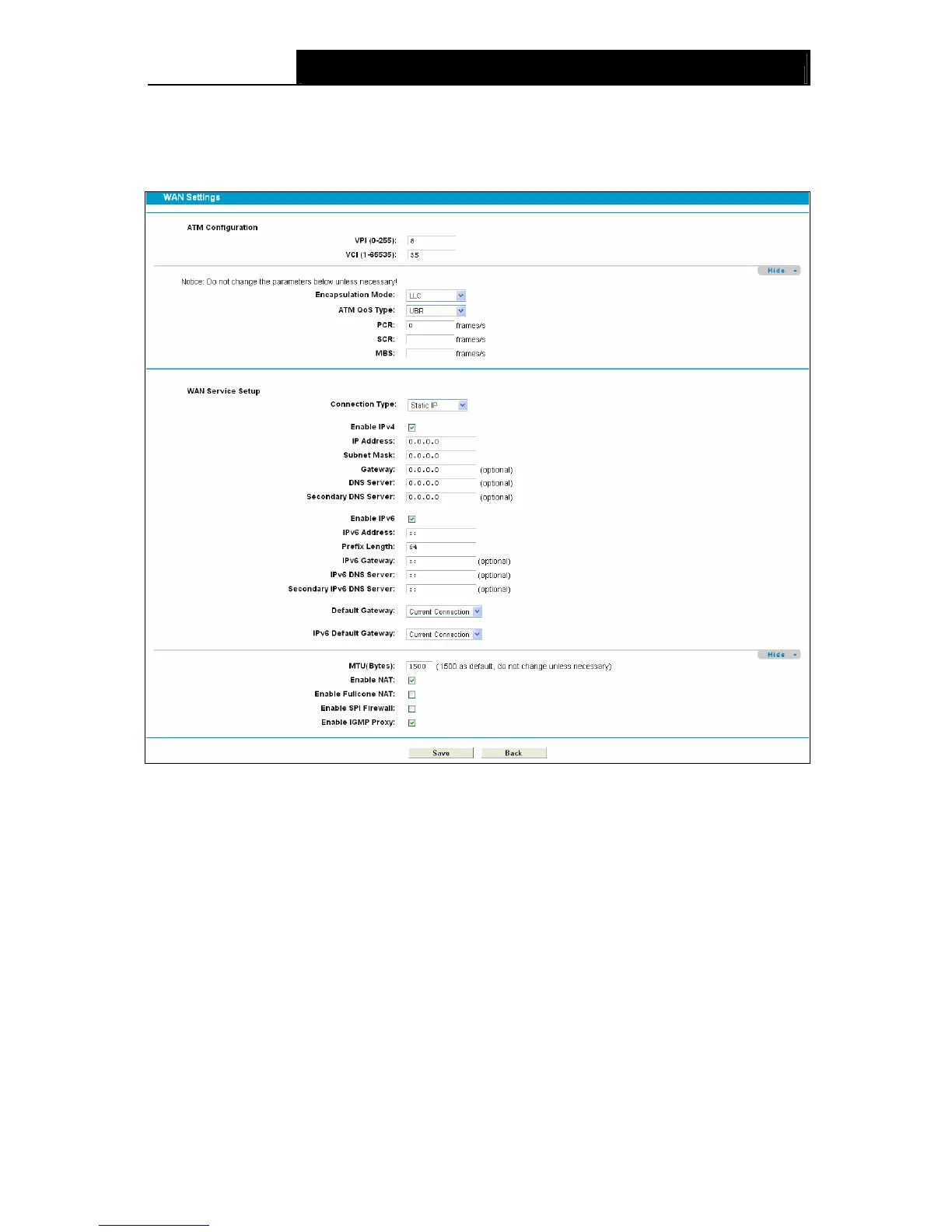 ¾ Encapsulation Mode: Select the encapsulation mode for the Static IP Address. Here you