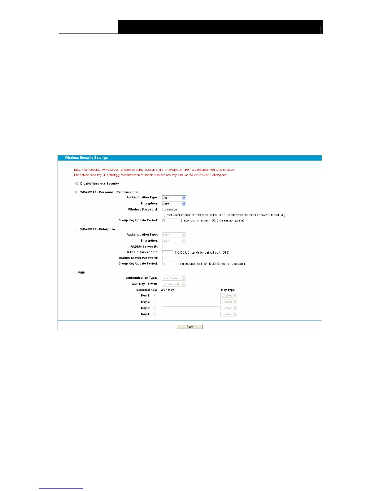 the drop-down list. The default setting is Auto, which can select WPA-PSK