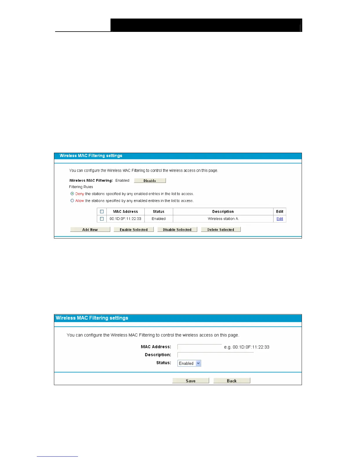 access by configuring the Wireless MAC Filtering function, shown in Figure 4-36.