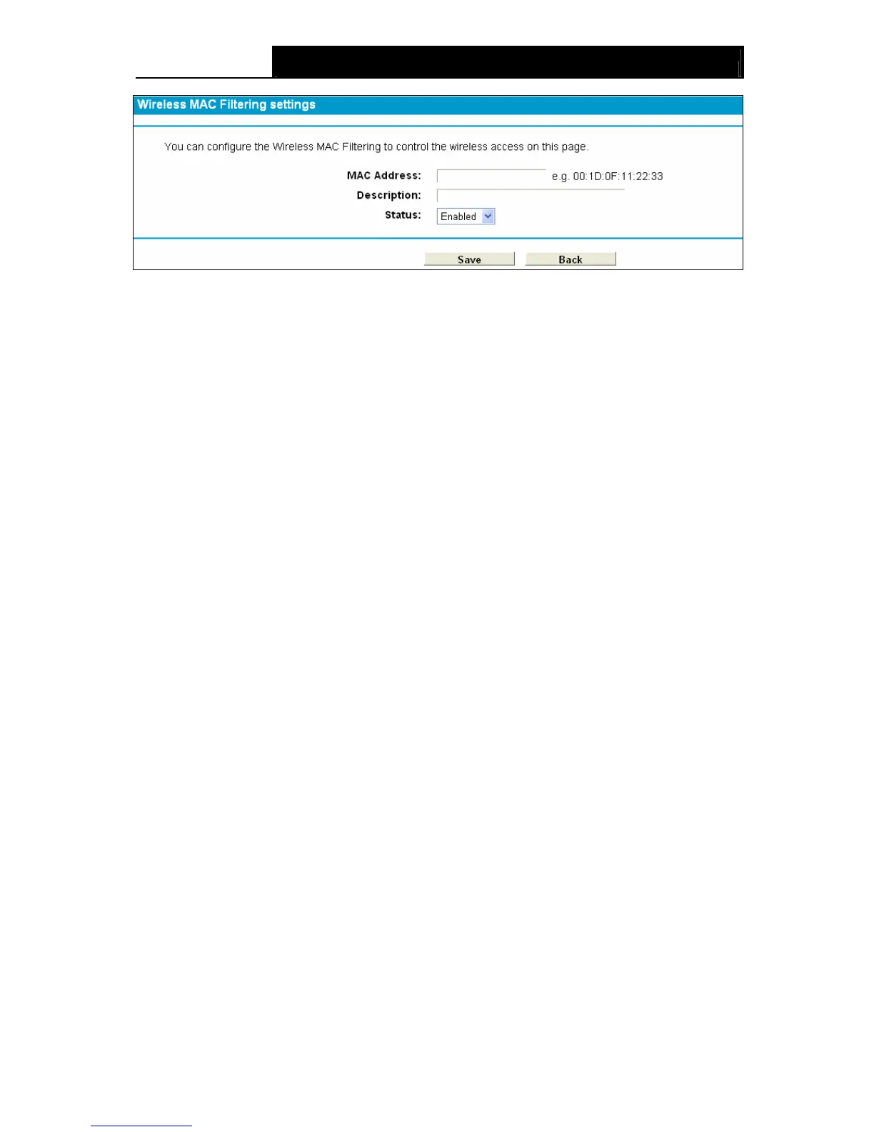 MAC Address Filtering list by following these steps: