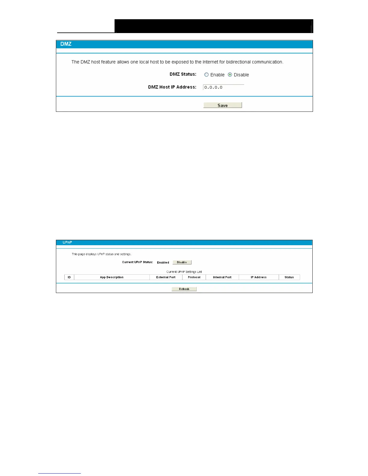 ¾ Current UPnP Status: UPnP can be enabled or disabled by clicking the Enable or Disable