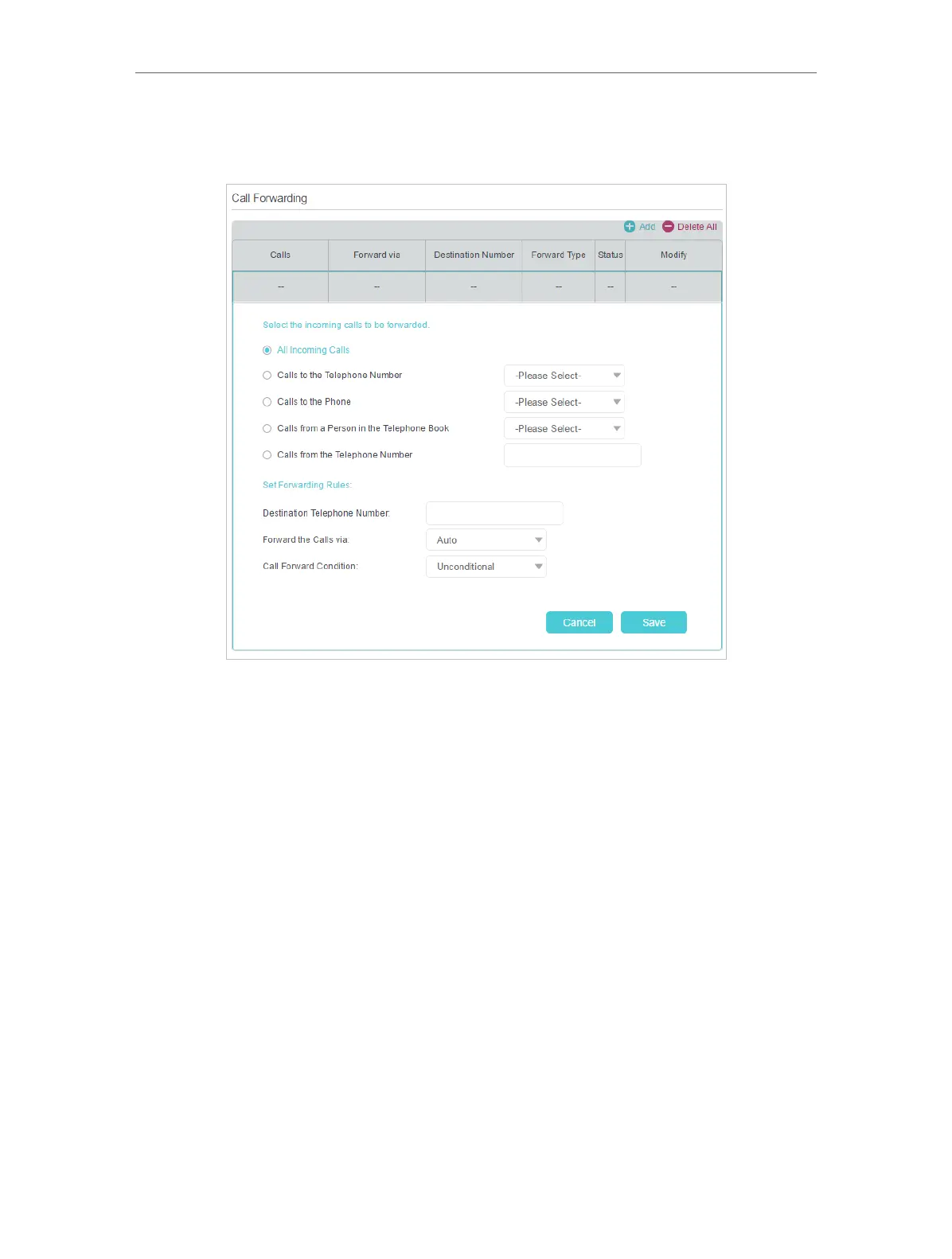 2. Go to Advanced > Telephony > Call Forwarding. Click Add to set how calls should be