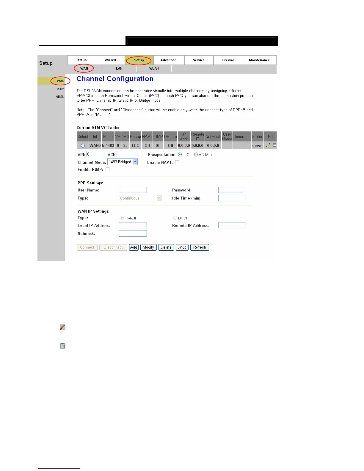 VPI (Virtual Path Identifier), VCI (Virtual Channel Identifier) settings to you. In this Device,