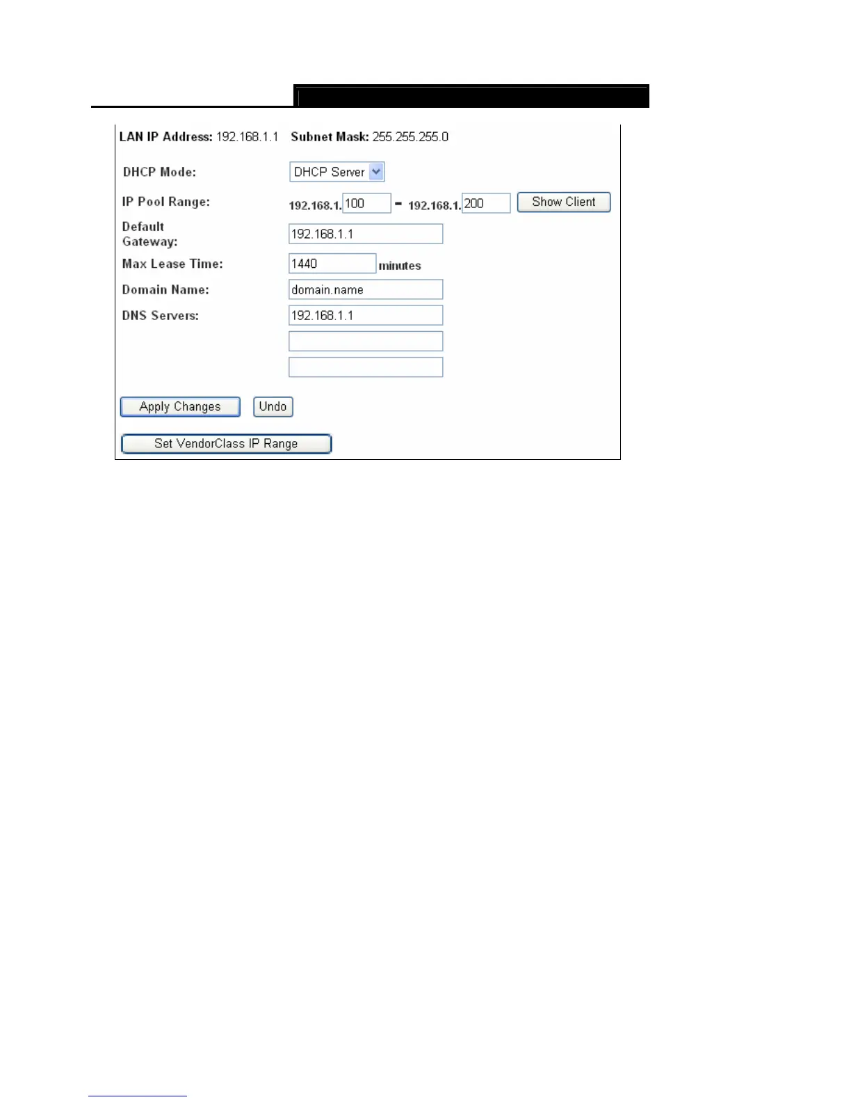 Set VendorClass IP Range: Click this button to and then you will enter the screen as shown