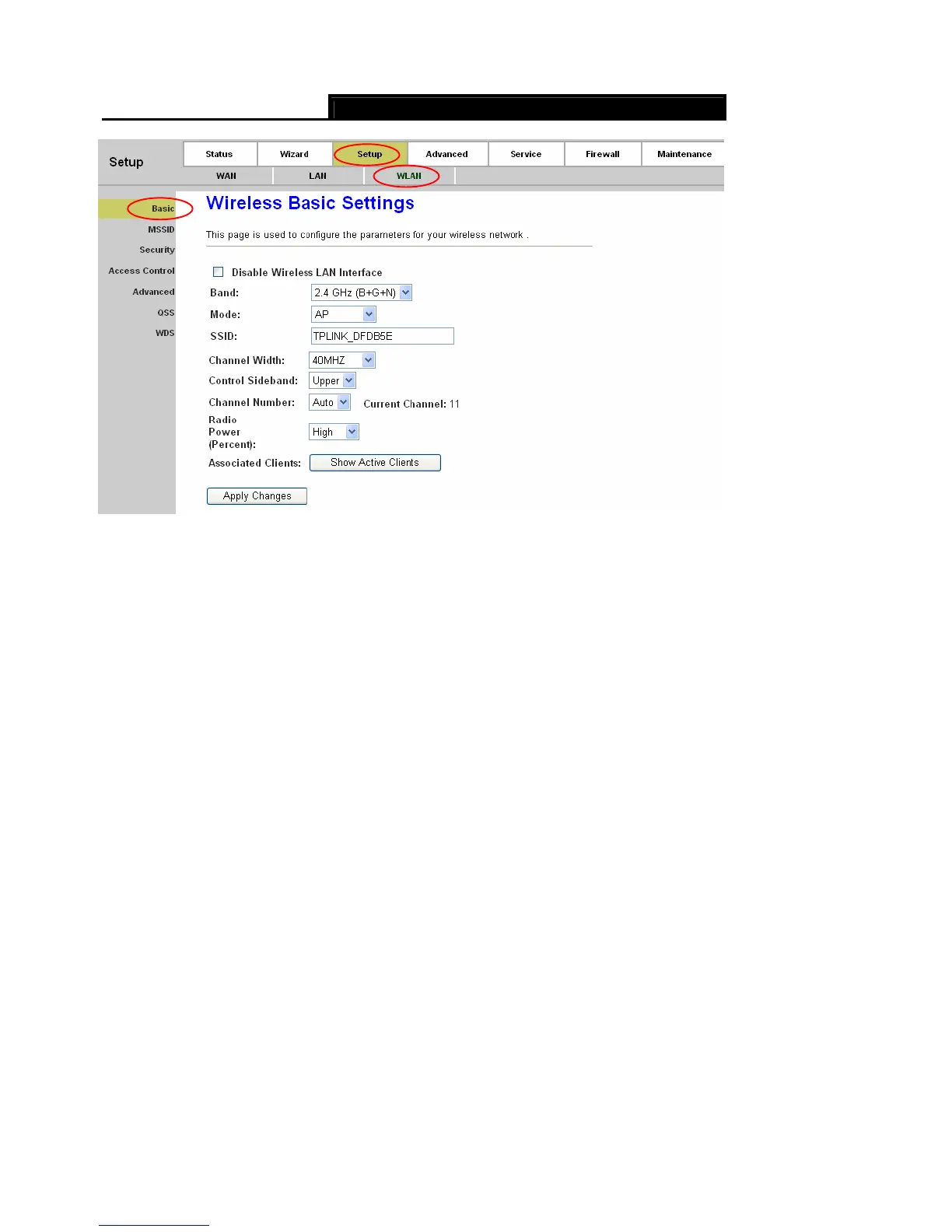 Mode: Options are AP and AP+WDS. If AP+WDS is selected, then the Router can bridge two