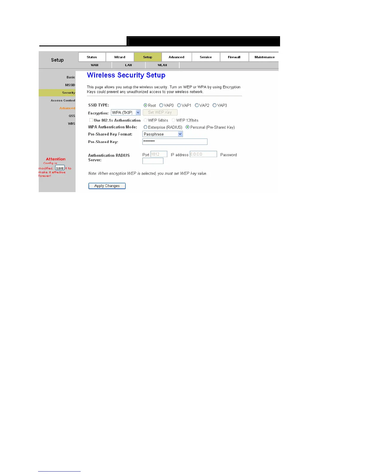 SSID TYPE: Select the desired wireless network to configure the security. There can be root