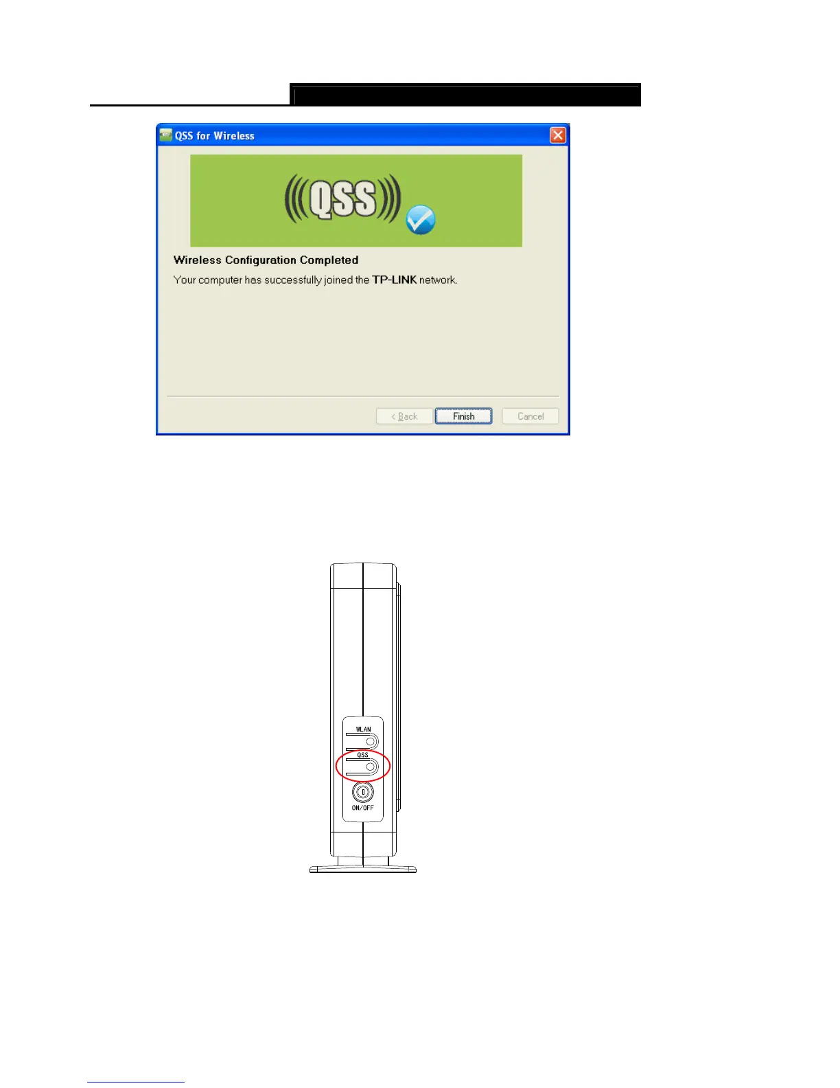 Step 1: Press the QSS button on the front panel of the Router or click Start PBC button in Figure