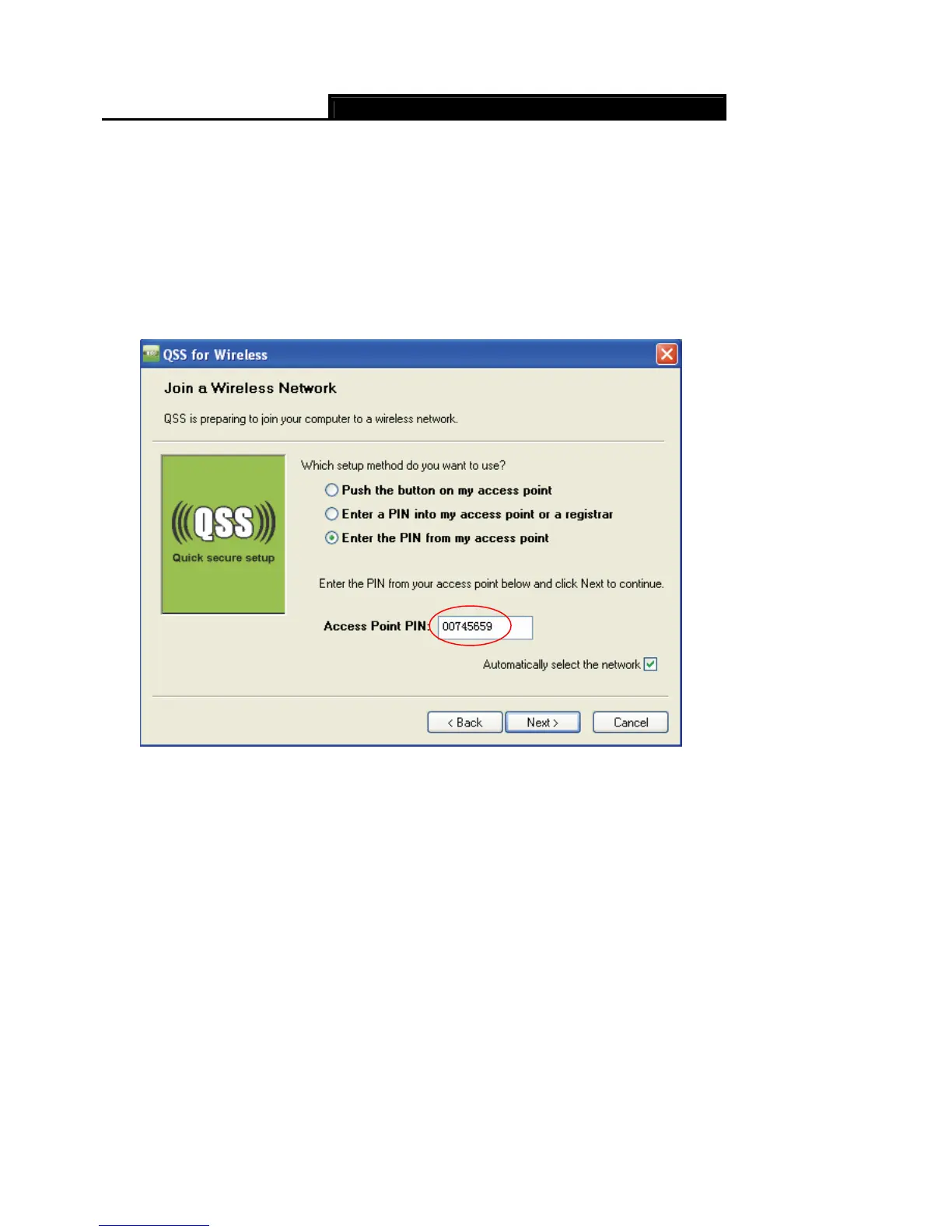 access point” in the configuration utility of the QSS as below, and enter the PIN code of