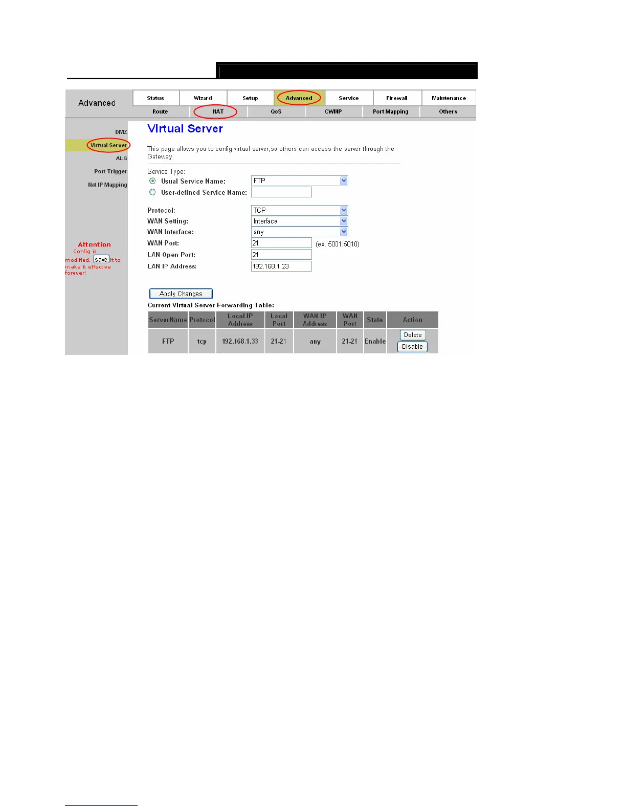 WAN IP Address: The IP address which the virtual server used on WAN side. You can