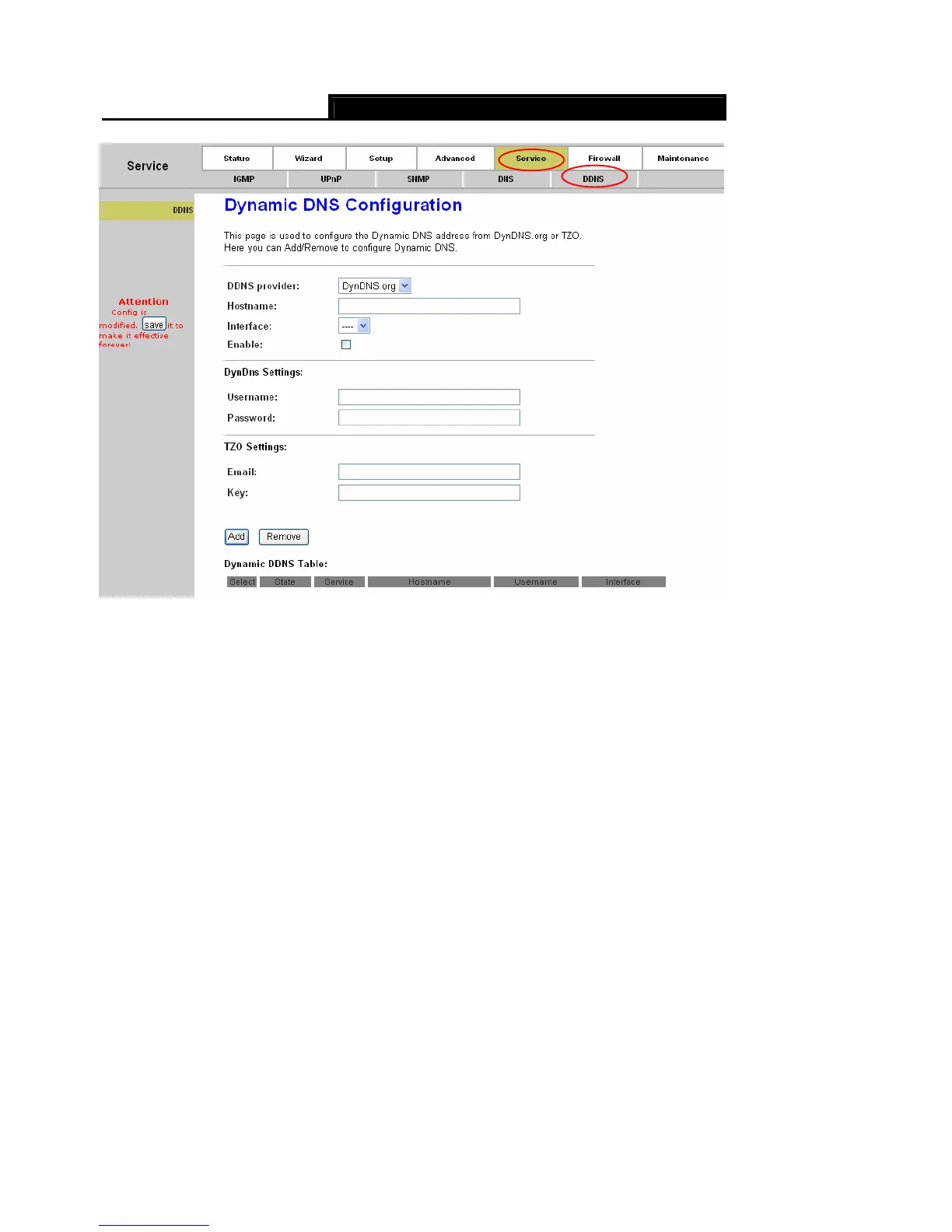 Click the Add button to add the DDNS entry. Click the Remove button to delete the existed DDNS