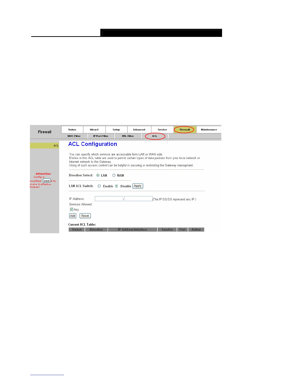 Direction Select: The direction of the ACL entry, it can be LAN or WAN.