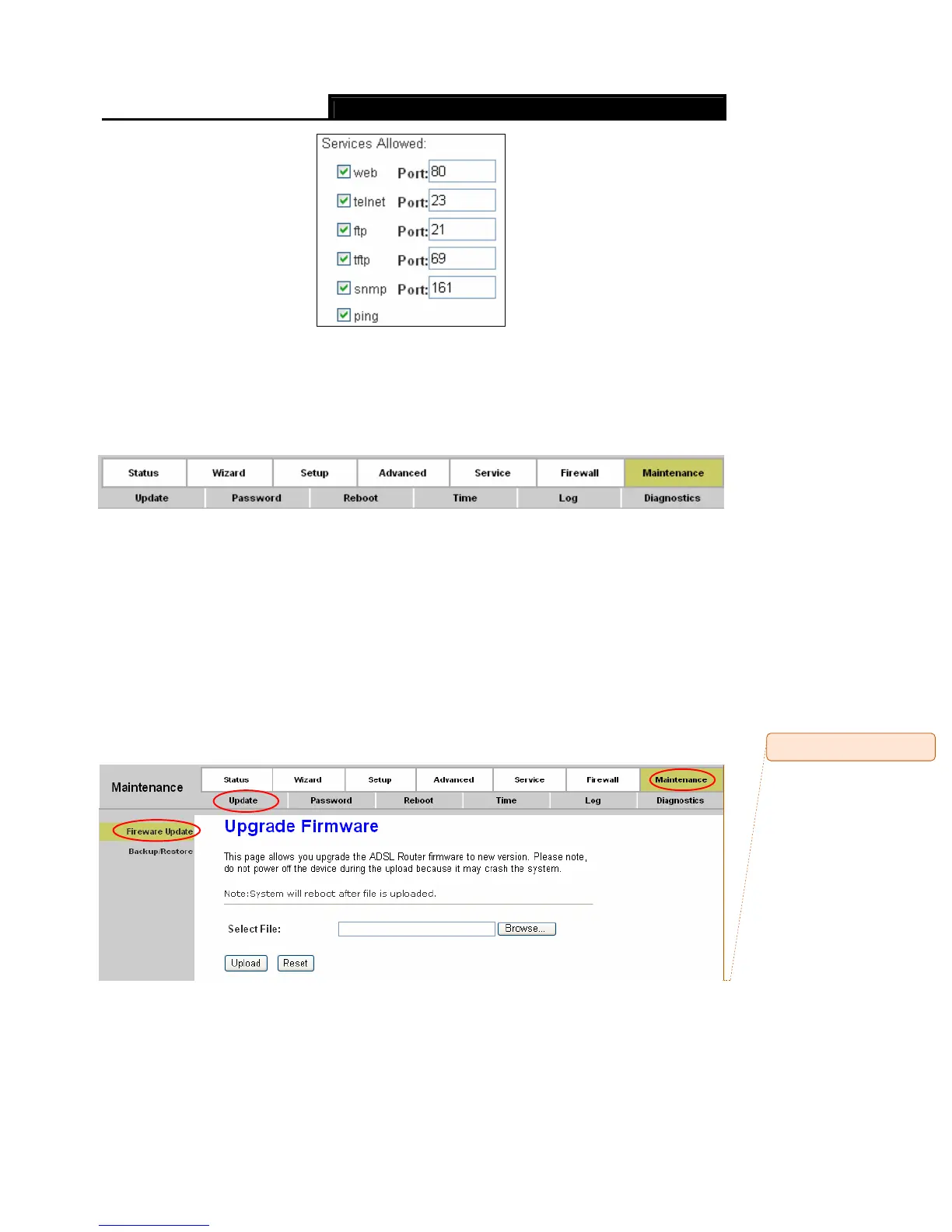 Choose “Maintenance→Update→Firmware Update”, you can upgrade the firmware of the