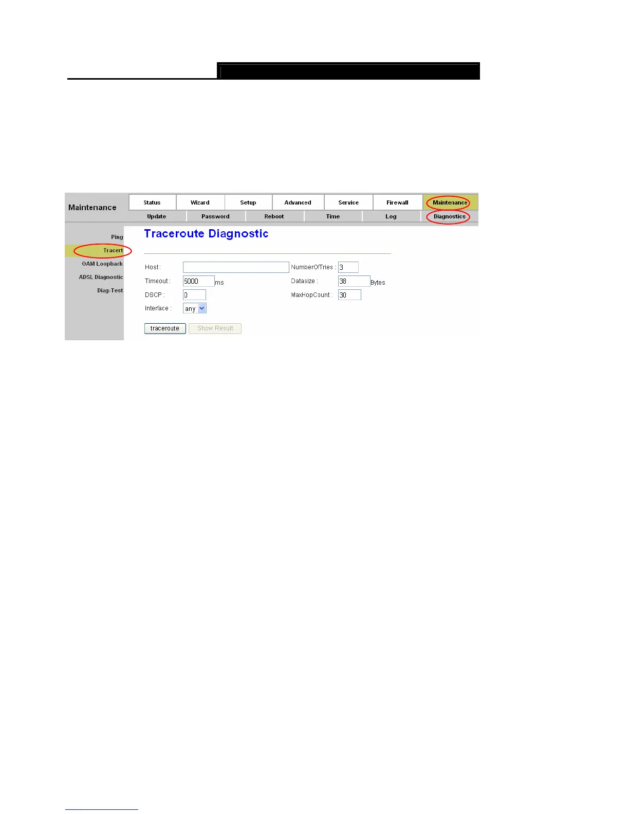 Choose “Maintenance→Diagnostic→Tracert”, you can tracert a host you want (shown in Figure