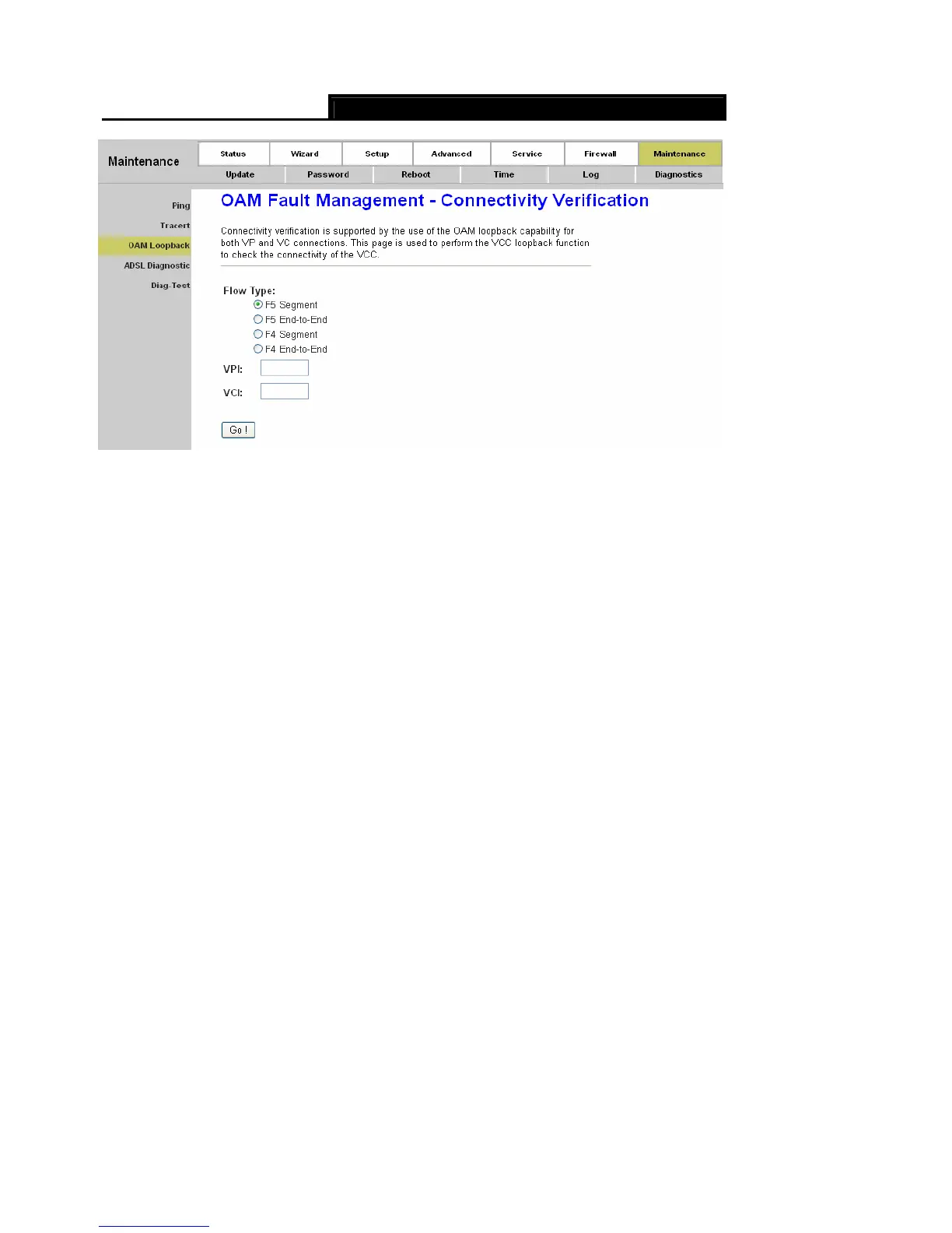 Flow type: The ATM OAM flow type. The selection can be F5 Segment, F5 End-to-End, F4