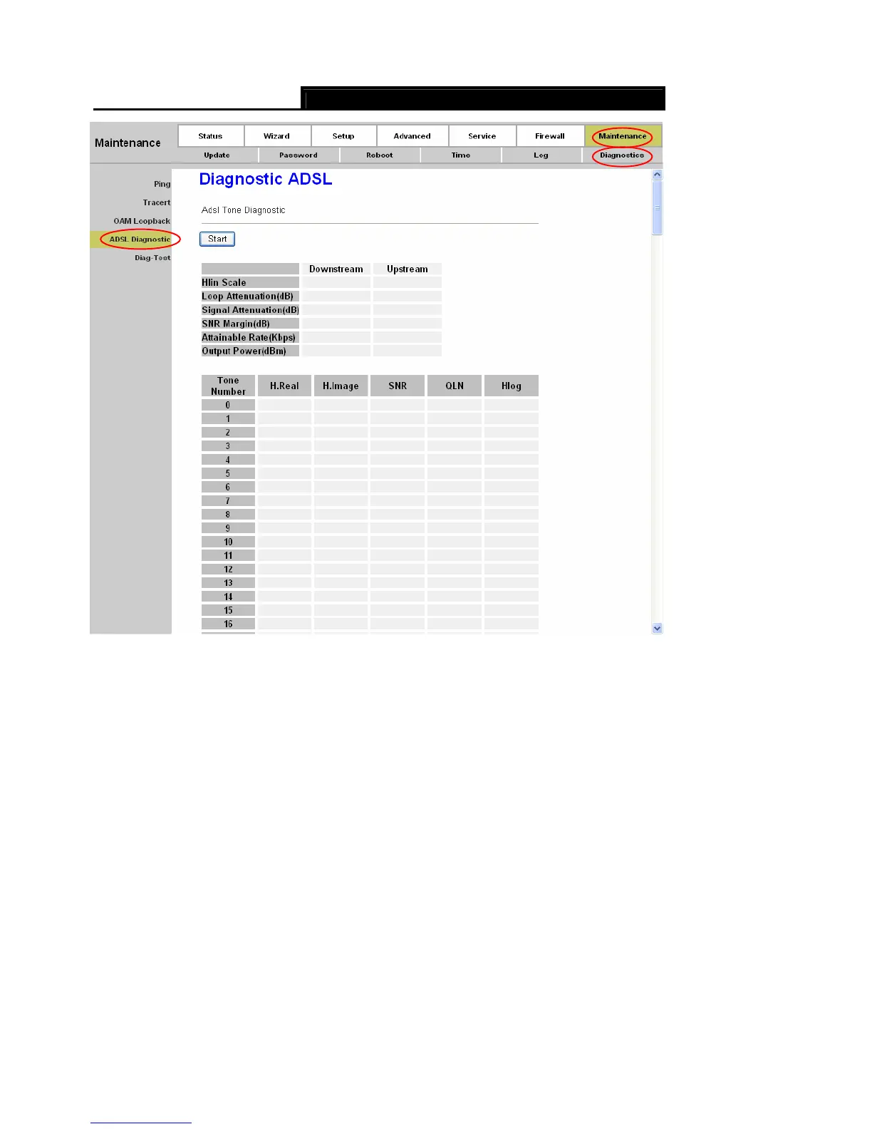 The Diagnostic Test allows you to test your DSL connection of the physical layer and protocol