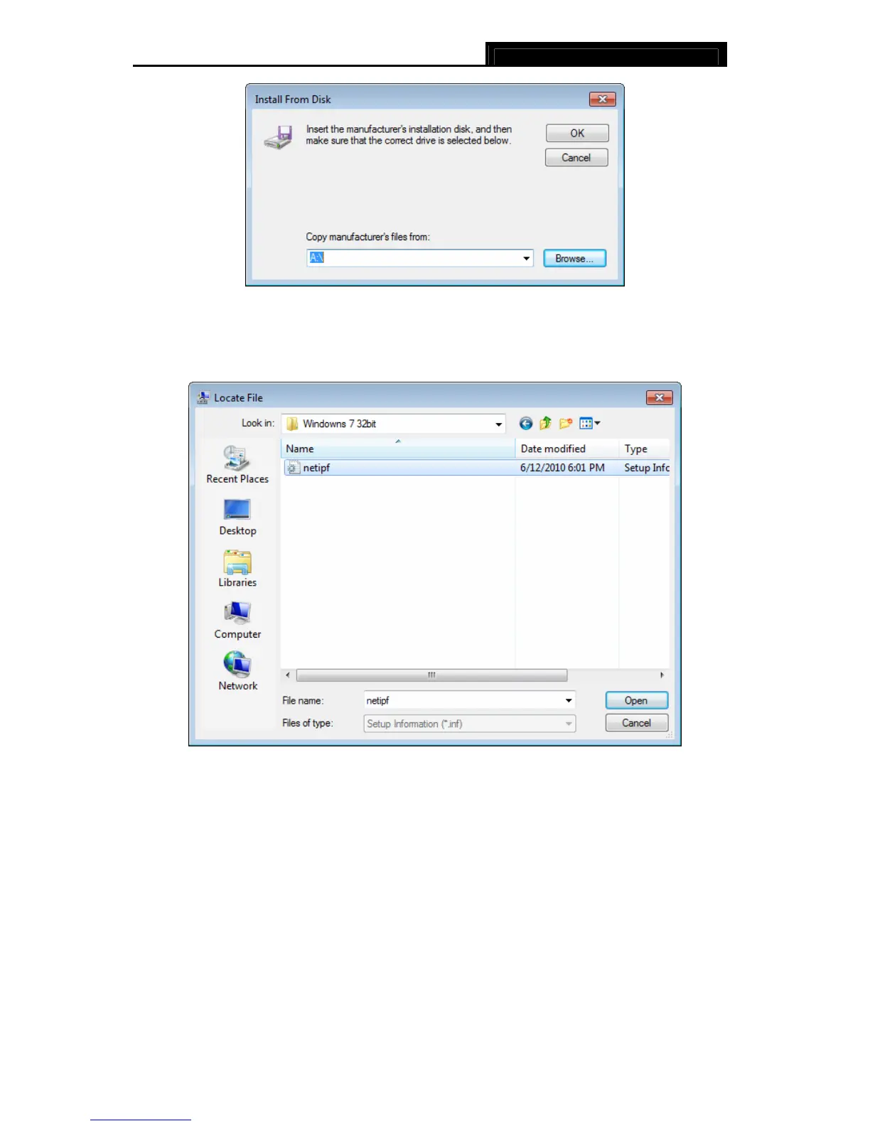 CD directory and choose the .inf file, and then click Open.