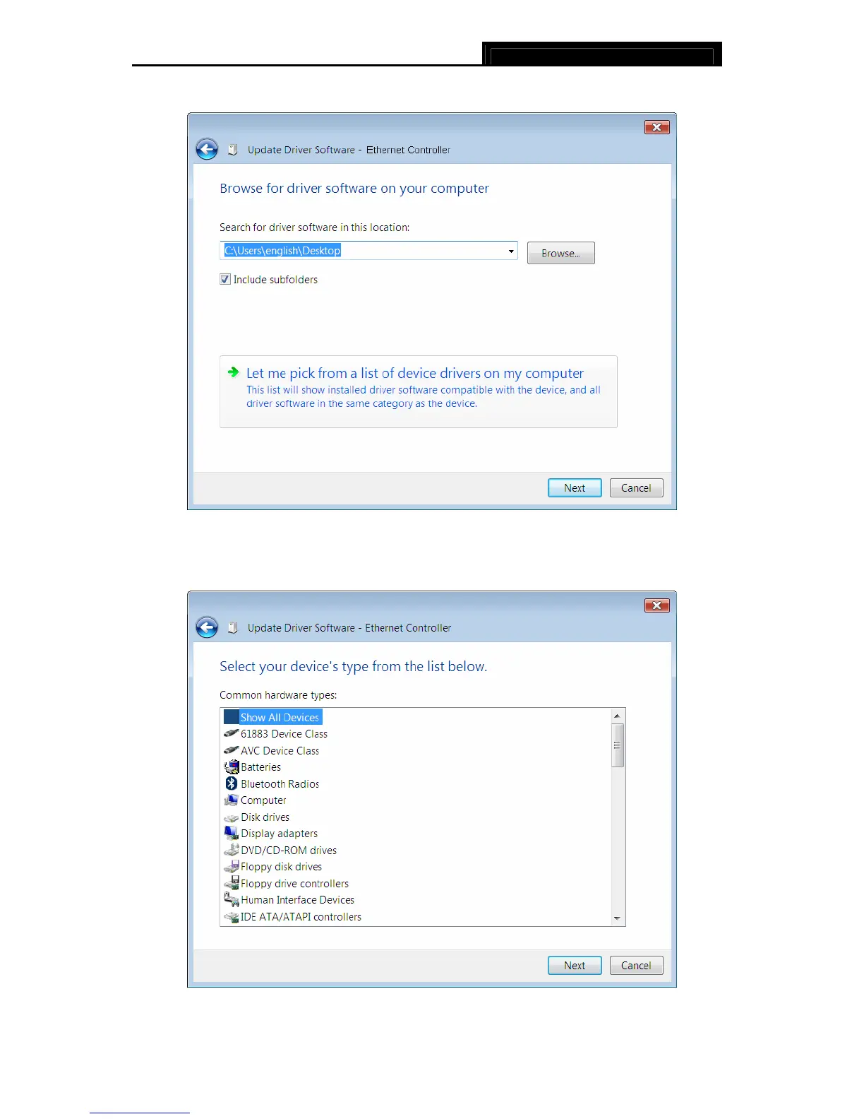 6. Select Show All Devices, and then Click Next.