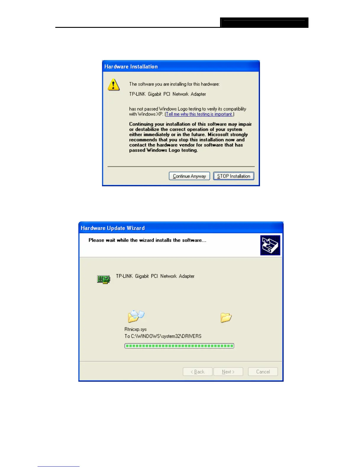 11. The Hardware Installation screen will pop up as shown in Figure 2-11; select Contin