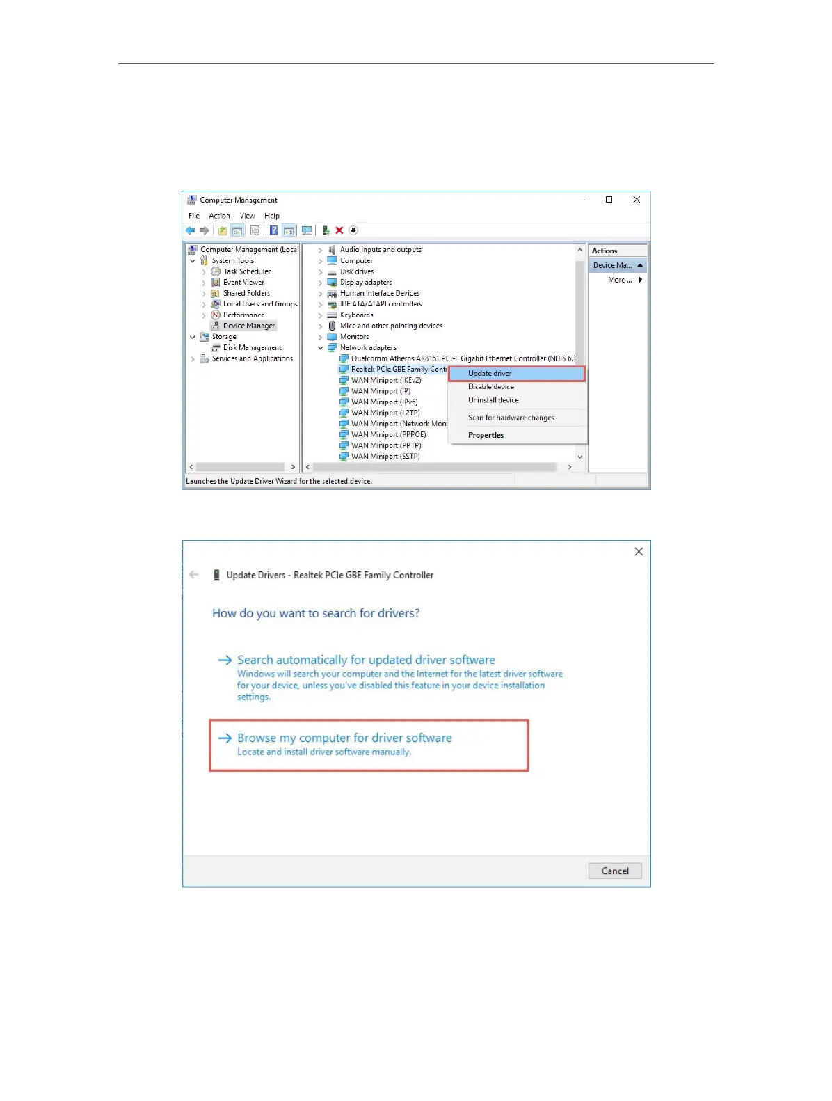 Open Device Manager. Go to Network adapters, right-click Realtek PCIe GBE
