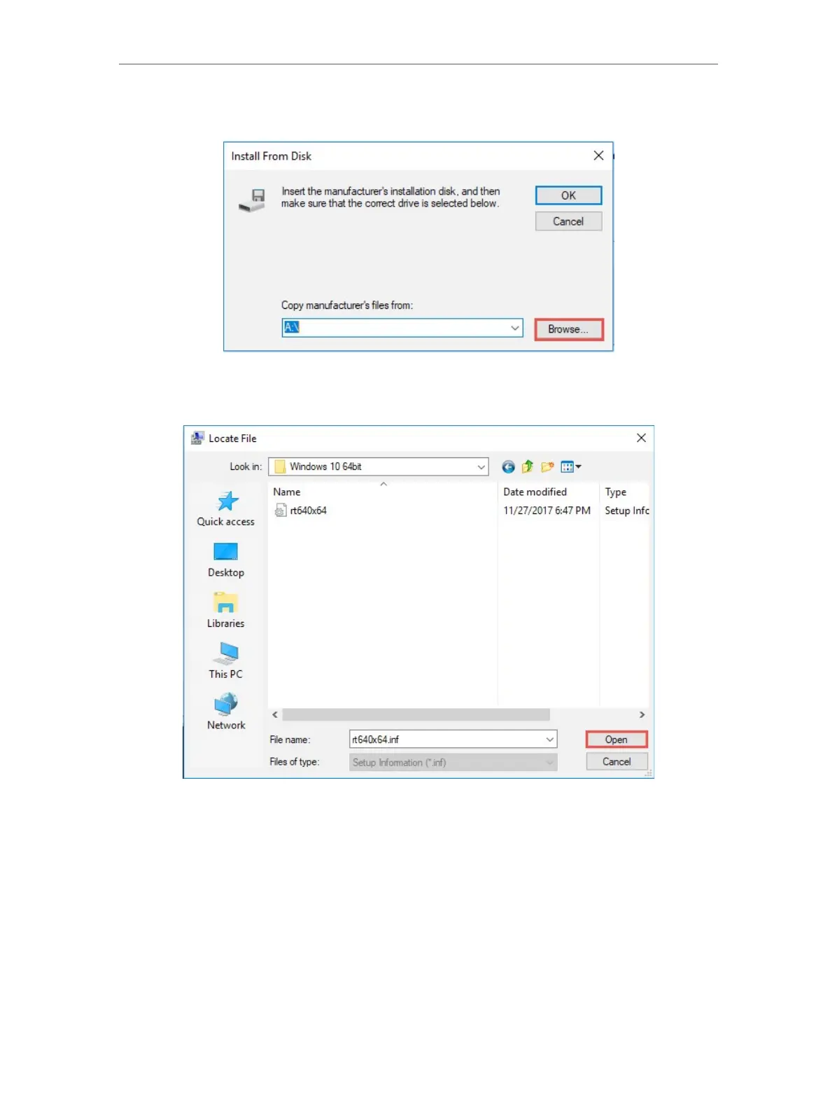 64bit), choose the .inf file, and then click Open.