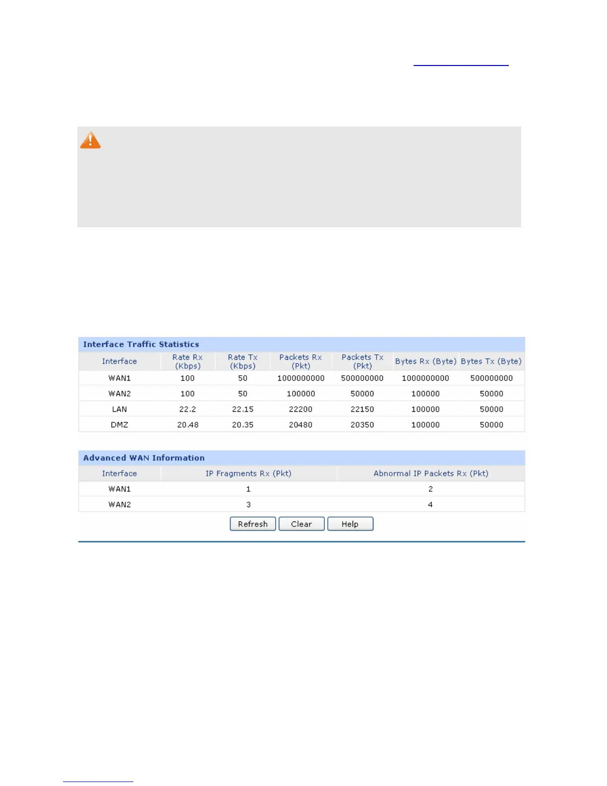 Choose the menu Maintenance→Statistics→Interface Traffic Statistics to load the following page.