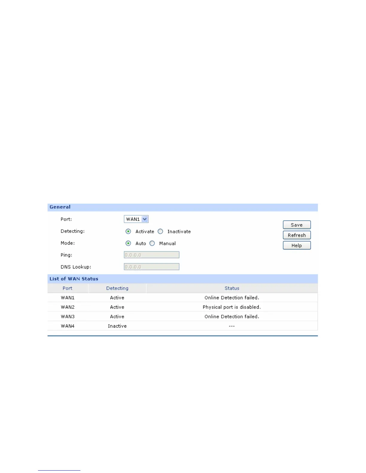 Lookup. When Online Detection is inactive, WAN status will be detected