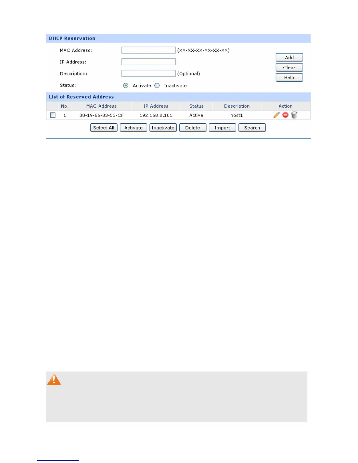 clicking <Import> button in Figure 3-16 DHCP Reservation.