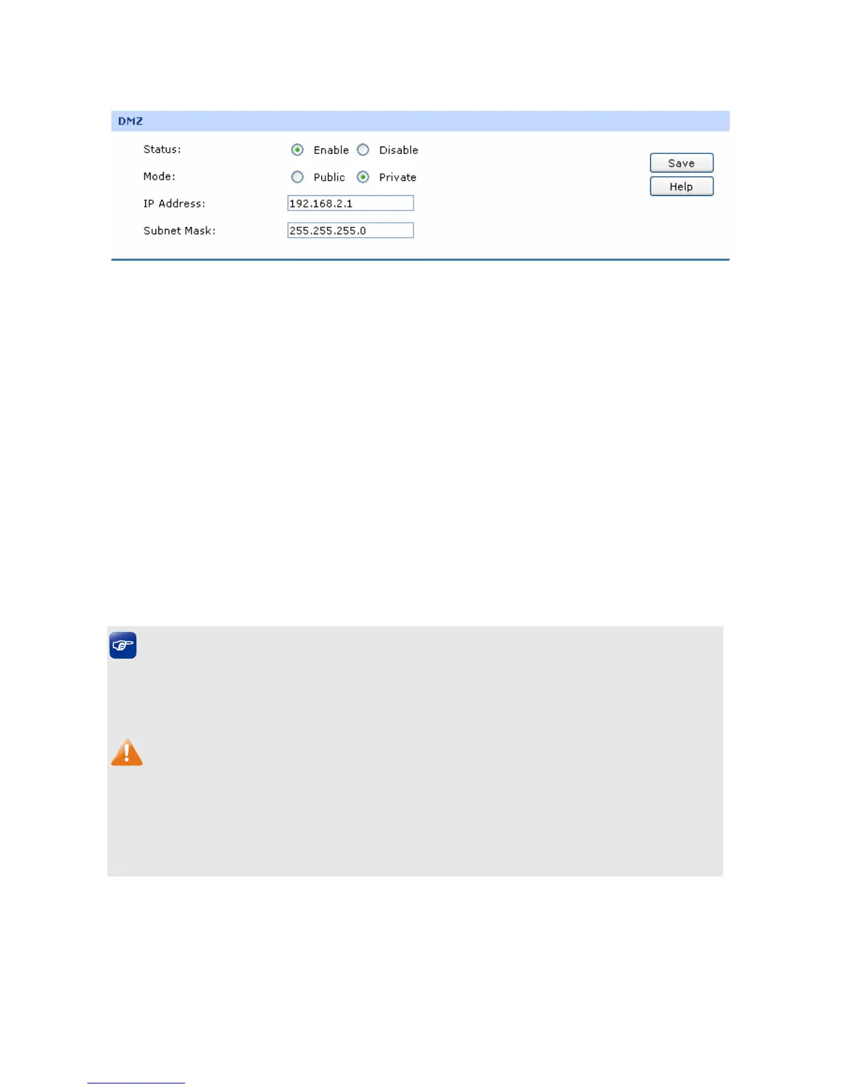 Choose the menu Network→DMZ→DMZ to load the following page.