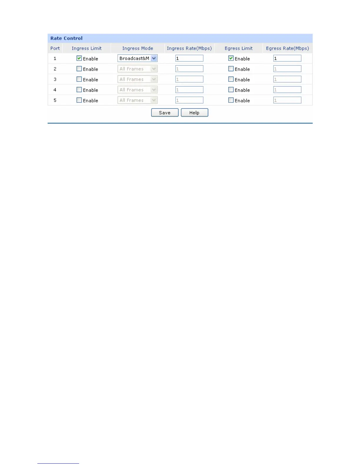 the ingress packets of Flood mode will not exceed 1Mbps, and the transmitting rate for all the egress