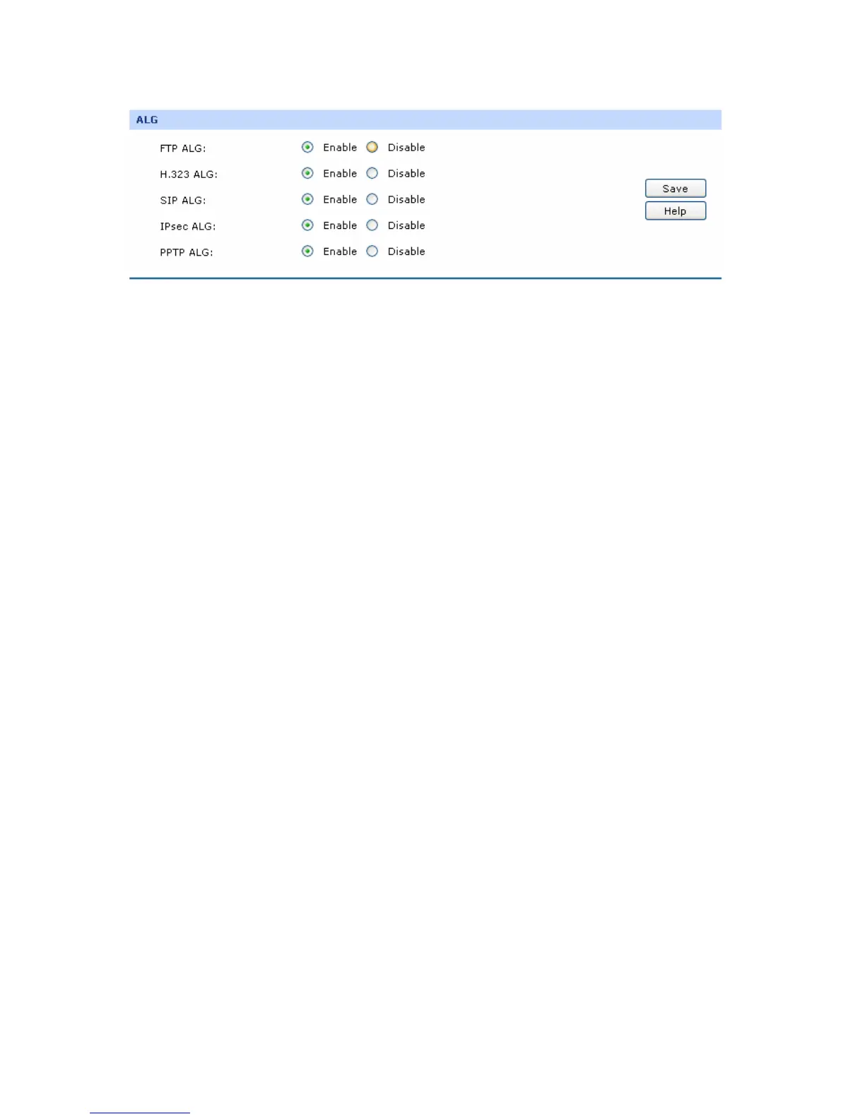 Enable or disable PPTP ALG. The default setting is enabled. It is