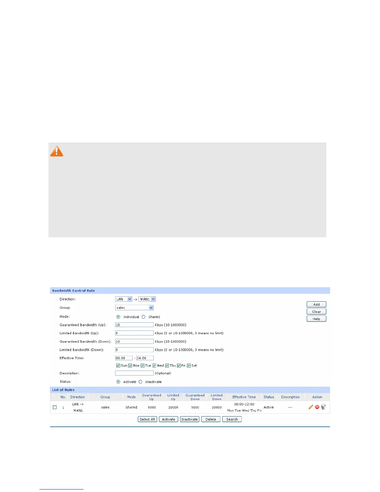 ● The Upstream/Downstream Bandwidth of WAN port you set must not be more than the bandwidth
