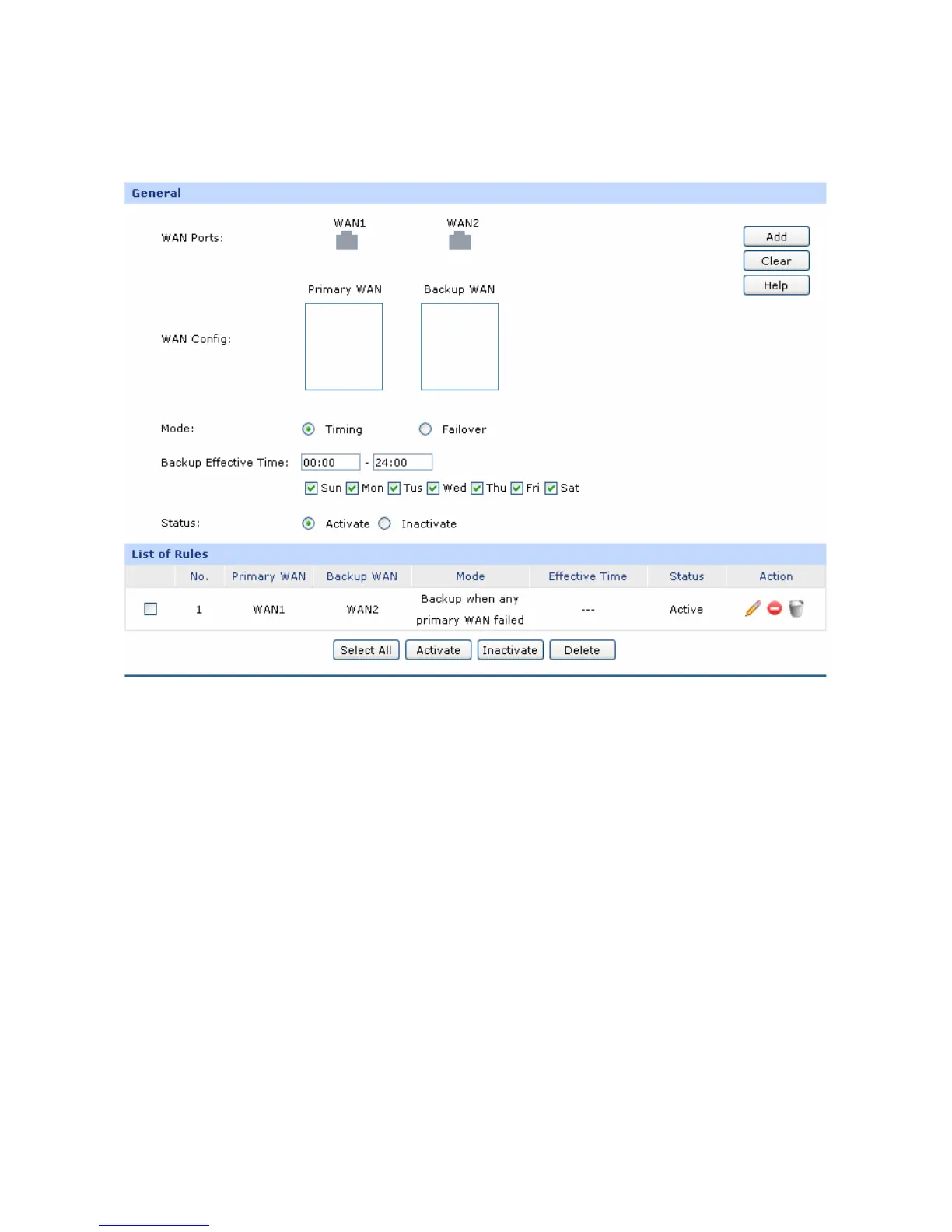 The WAN port in the secondary WAN list will share the traffic for the WAN in