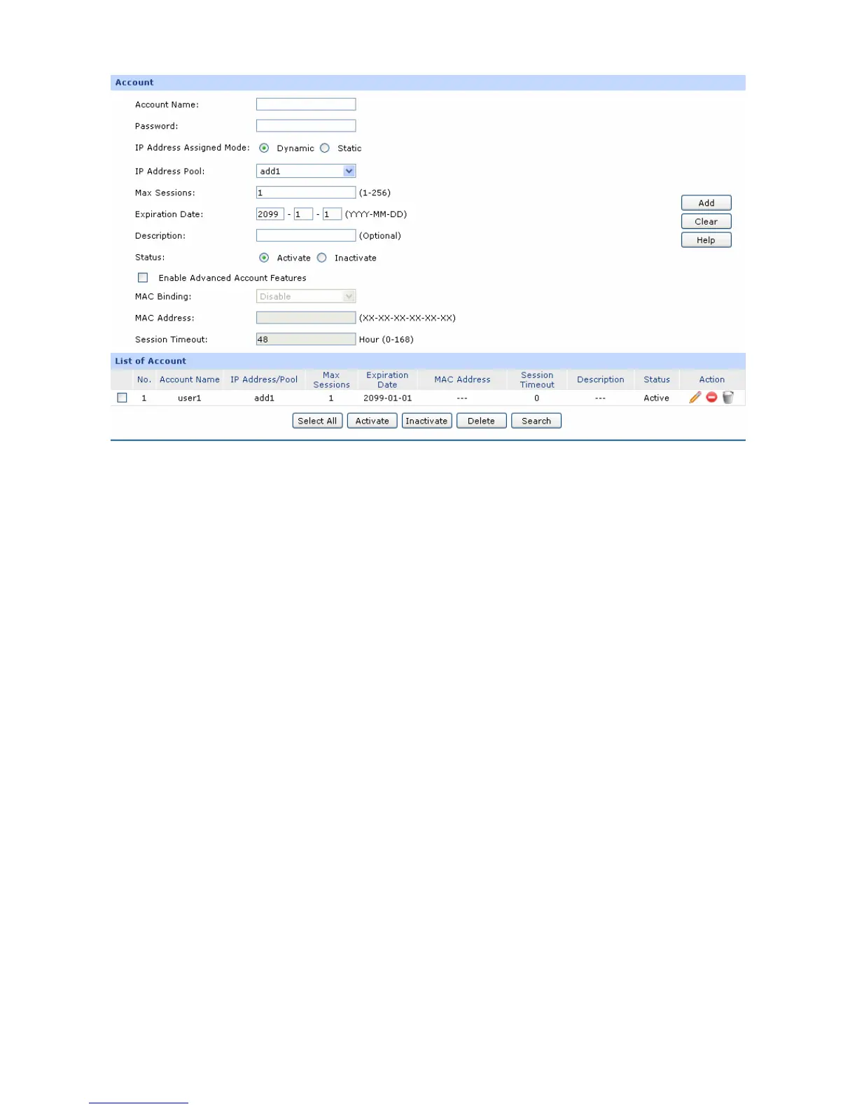 Specify the Expiration Date of the account. The default is 2099-1-1.