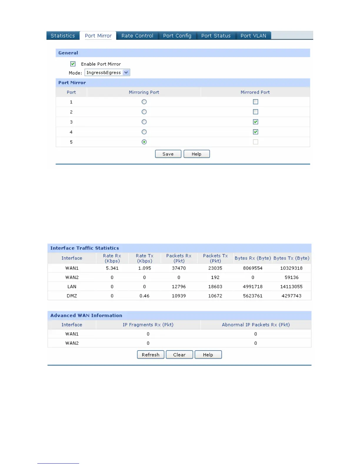 Load the Interface Traffic Statistics page to view the traffic statistics of each physical interface of the