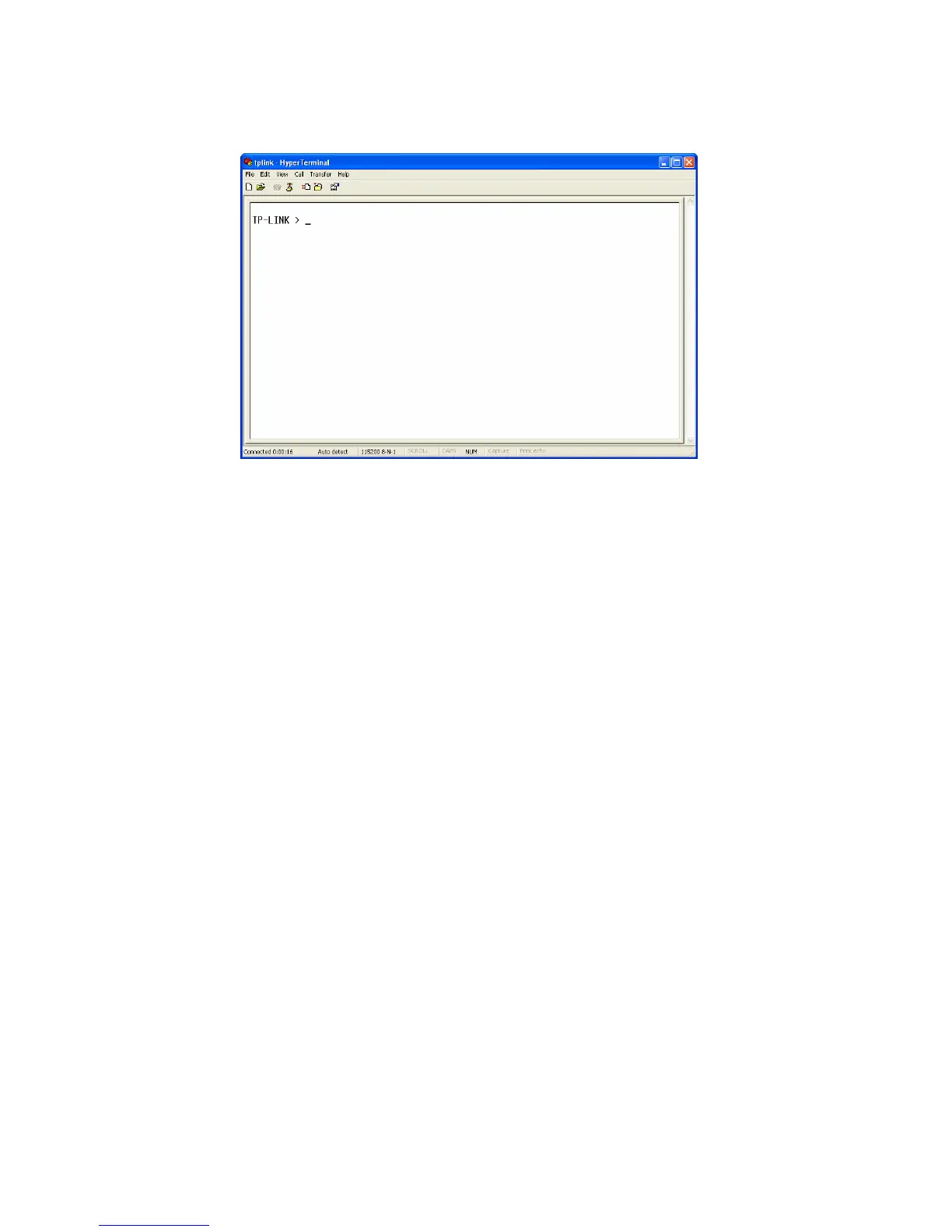 7. The DOS prompting “TP-LINK>” will appear after pressing the Enter button in the Hyper Terminal