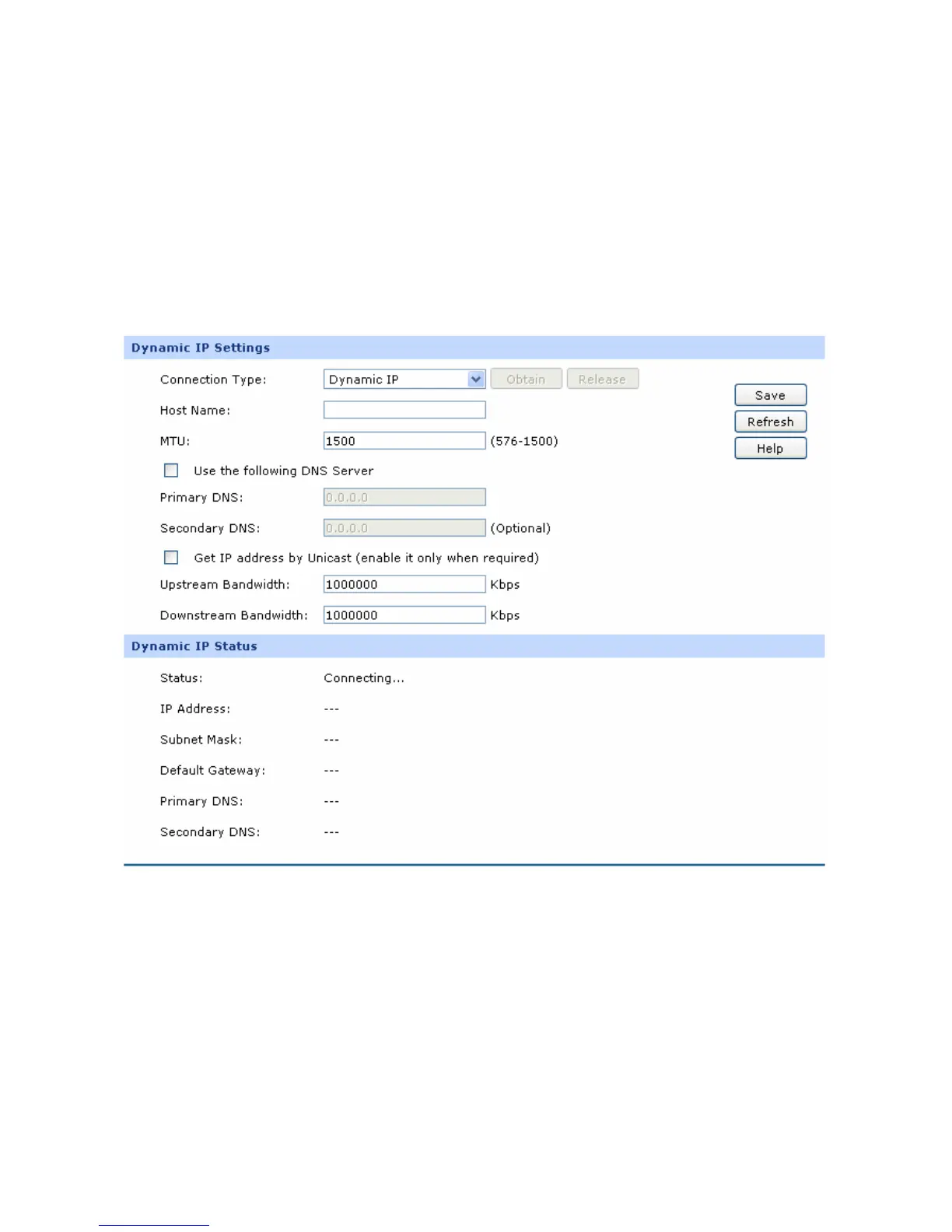 Dynamic IP connection type to obtain the parameters for WAN port automatically.