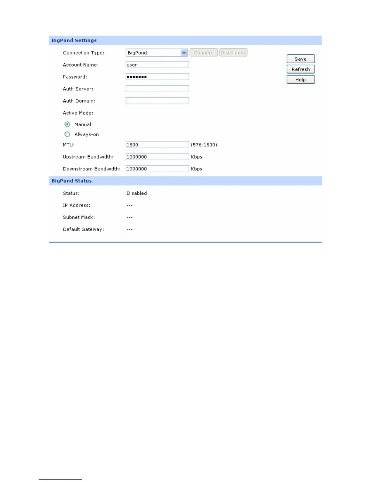 Select BigPond if your ISP provides a BigPond connection. Click