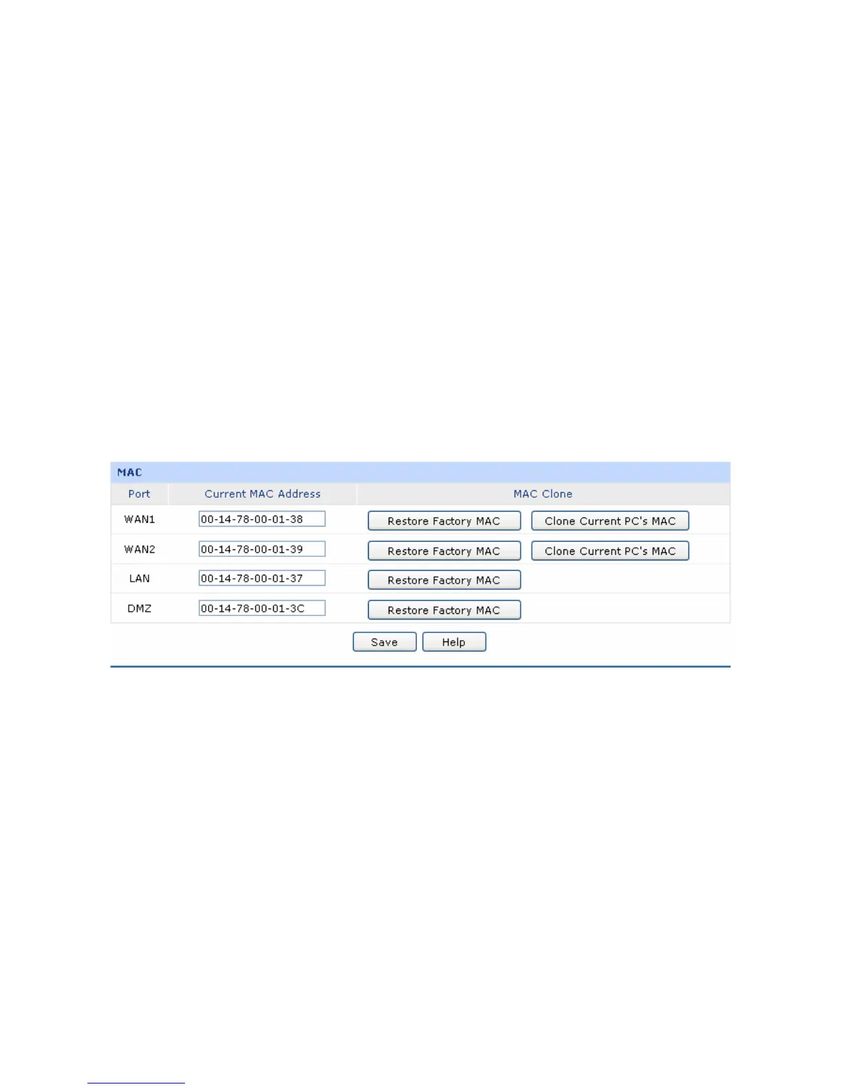 Set the MAC Address for DMZ port: