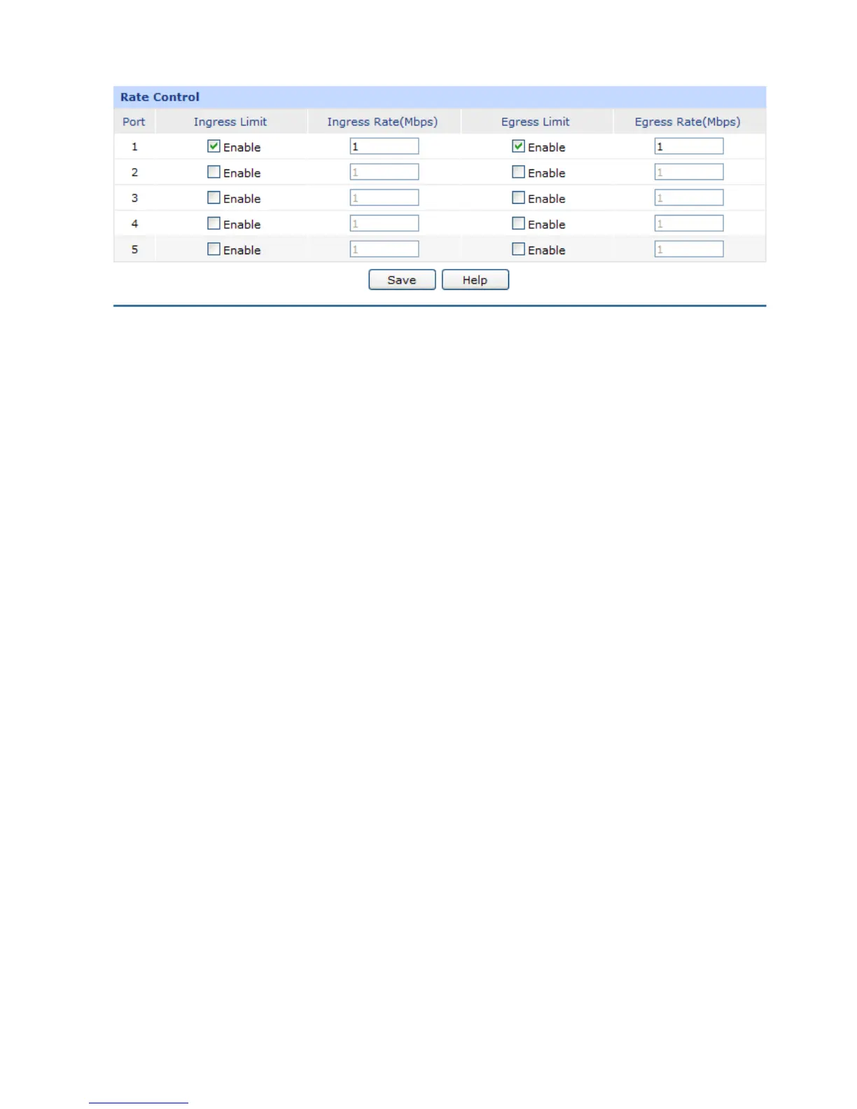 The first entry in Figure 3-22 indicates: The Ingress and Egress Limits are enabled for port 1. The