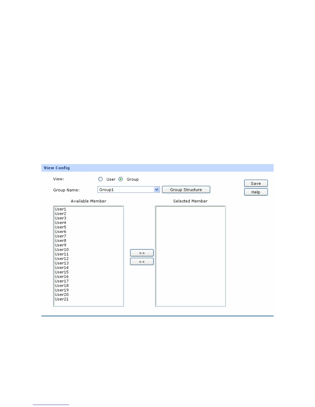 On this page, you can configure the User View or Group View.