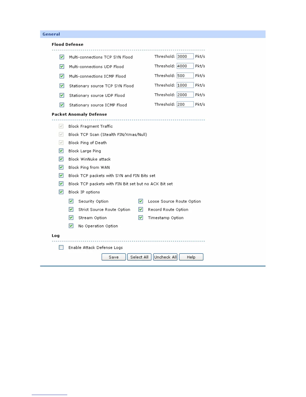 including TCP SYN, UDP, ICMP and so on. It is recommended to
